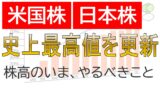 - 日米株式市場、米国株式市場ともに史上最高値の更新が継続。