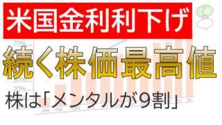 株式投資 株はメンタルが9割。米国利下げで続く株価最高値でどう動くか【投資日記002】 米国政策金利の利下げで続く株価の最高値更新。株をホールドし続けるか?利益確定するべきか?重要な株式ニュースを見ながら、いま取るべき行動について見ていきましょう。 2025.09.21 株式投資
